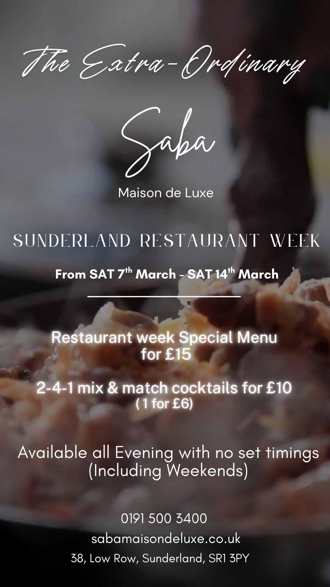 Friday, Saturday & Sunday: 4:30 PM - till late.