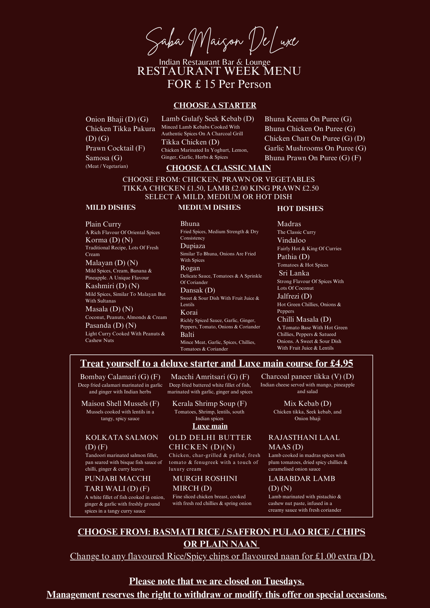 Closed Tuesdays (open in December)